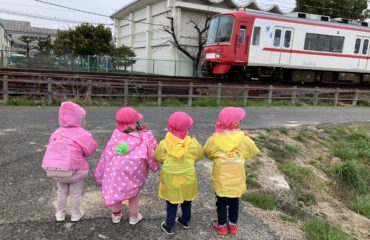 雨の日限定、カッパ姿でもお散歩に行きます。カッパでのお散歩は子どもたちも特別感があり、大好きです!