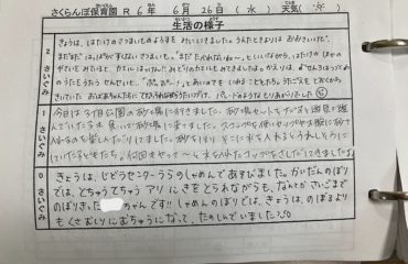 ご家庭の様子は連絡帳でお伝えいただき、園での保育に万全を期していきます。
