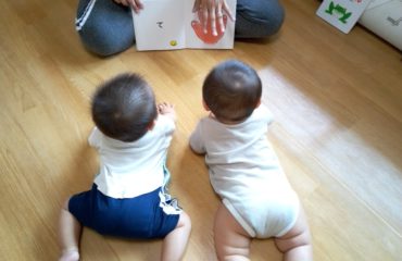 0歳児さんも絵本を見たり、触れ合い遊びを楽しんだりしながら元気に過ごしています!乳母車に乗ってお散歩にも行きます。