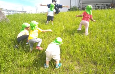 - 毎日、友達と散歩に出かけ、よく歩き、草花や生き物などにふれ、まわりの多くの物への関心を持ち、感動する心を育てます。