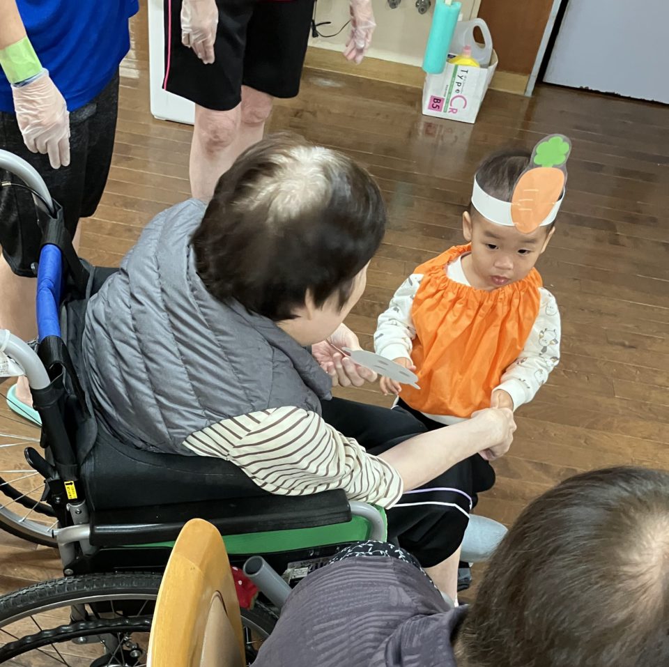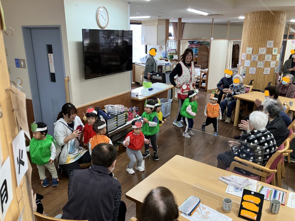 たくさんのおじいちゃん、おばあちゃん達の前へ。