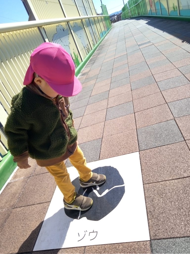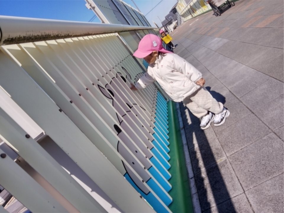 たくさん遊んだあとは、歩道橋を渡り