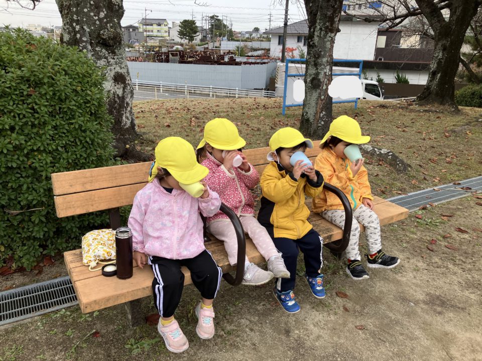 「じゃあ、公園でお茶飲んですべり台やろーか?」