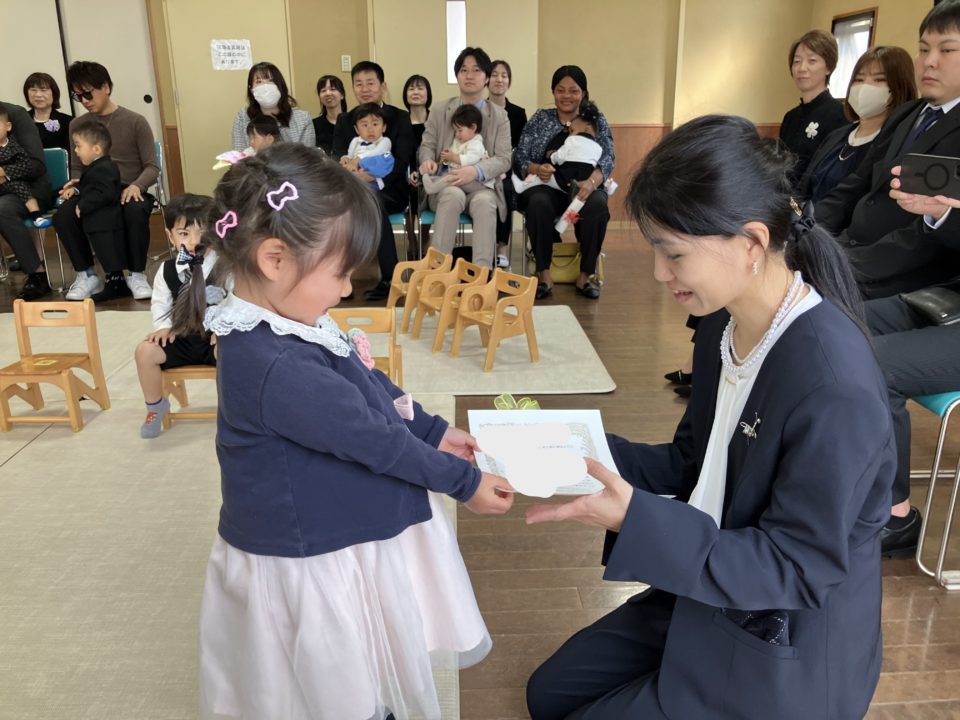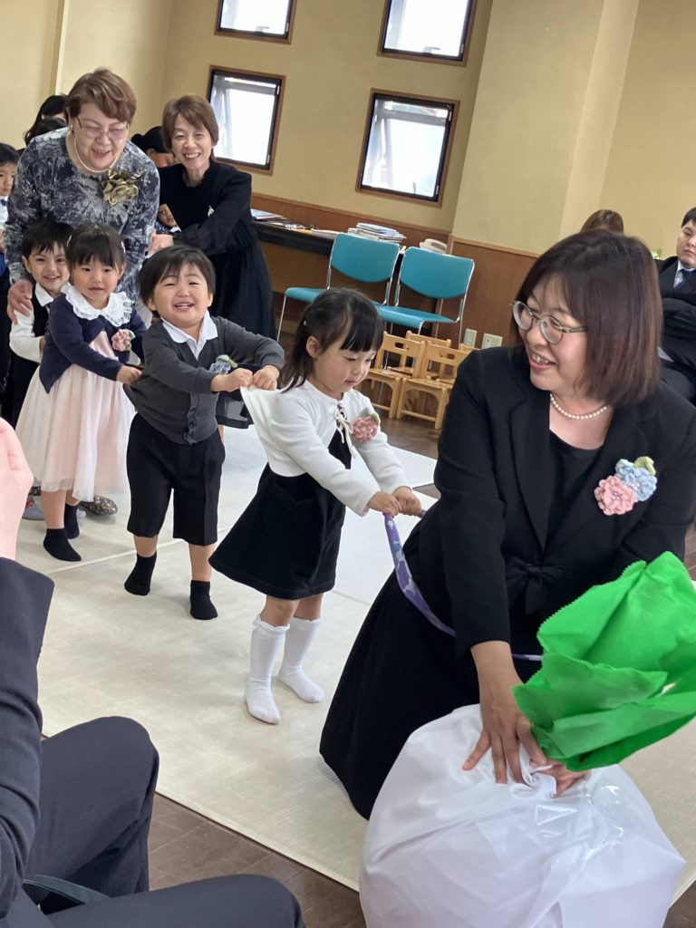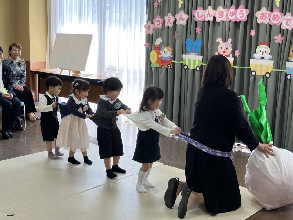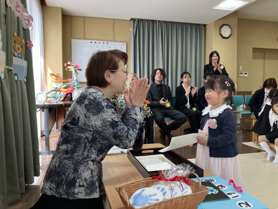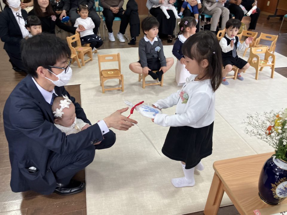今年は卒園児さん4人、転園児さん1人でした。