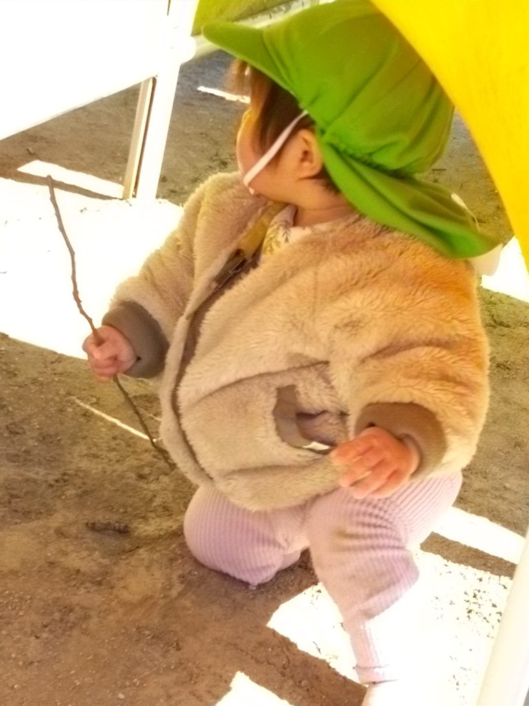 トンネル遊具では、保育士が「いないいなーい」というと、「ばあ!」と顔を出して楽しむ様子が見られましたよ