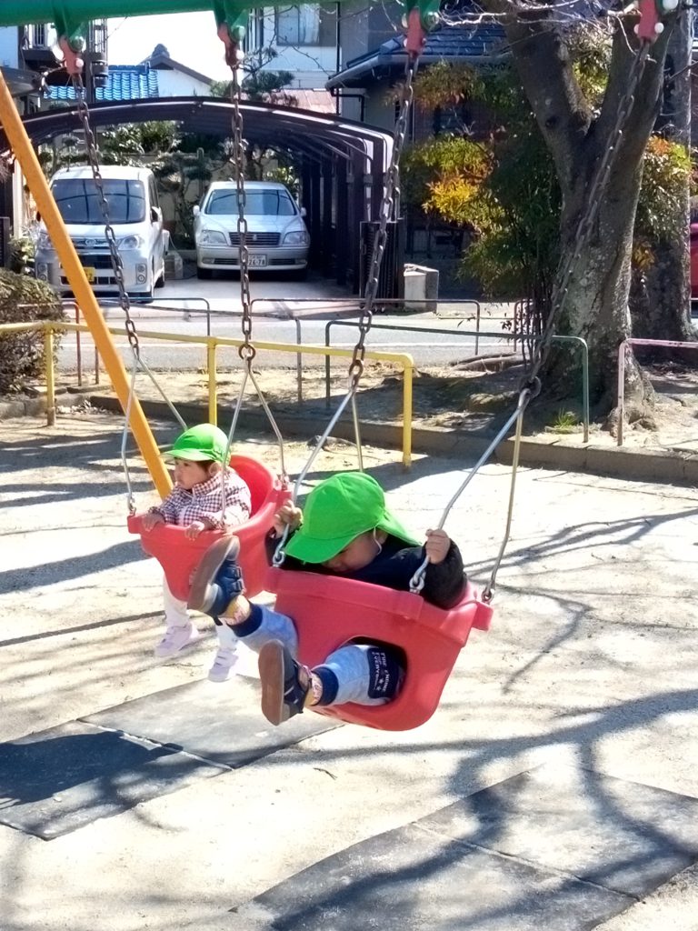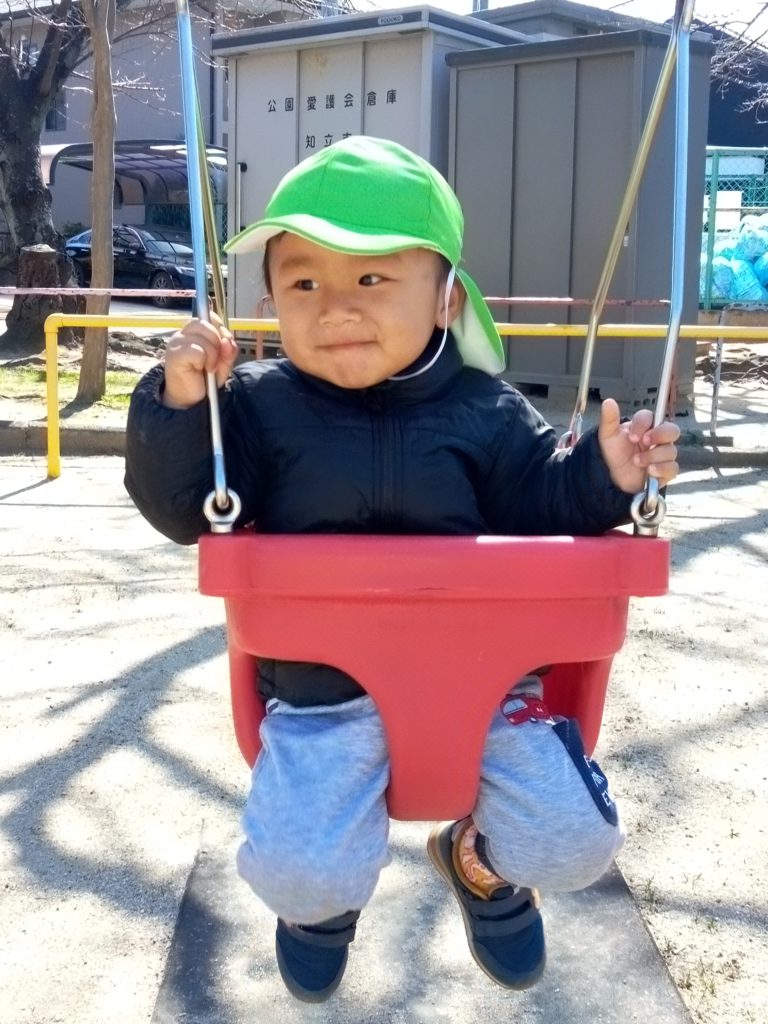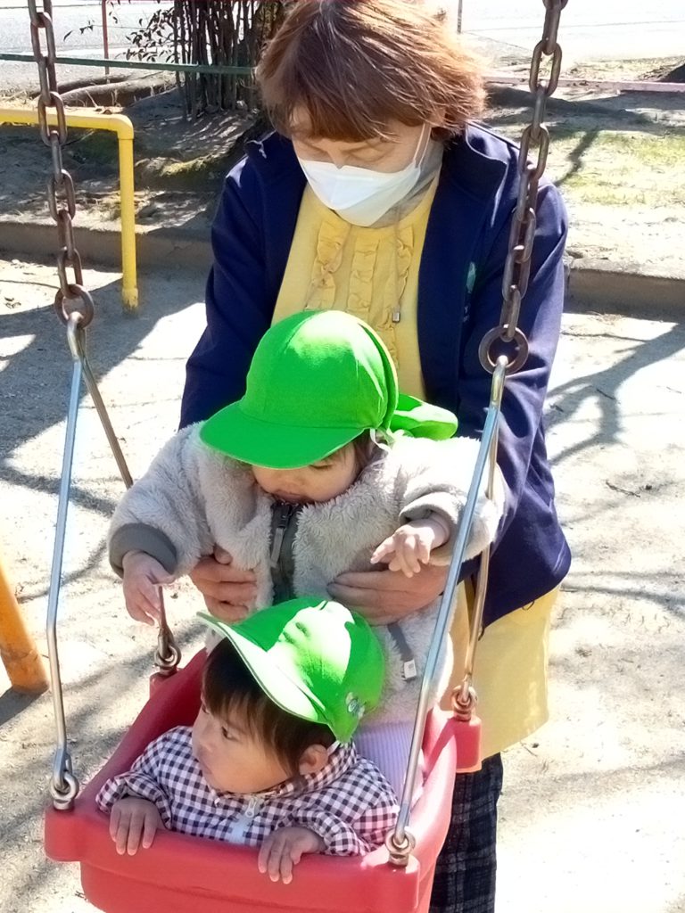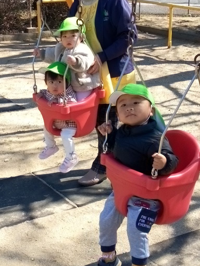 保育者に押してもらいゆらゆら揺れて気持ちよさそうでした